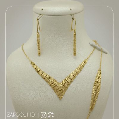 گوشواره : 2/370 دستبند : 2/690 گردنبند : 5/520 وزن کل : 10/580